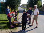 Velikonoční zajíc u hlavní silnice v Oselcích a tradiční křístání.
